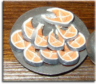 Salmon steaks on a large pewter platter The platter is made by Tony Knott