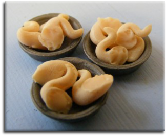 Small pewter bowl with 3 chicken legs cleaned and ready for the pot!
