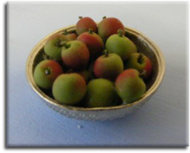 ‘Silver’ Bowl piled high with rosy, juicy Apples! Each arrangement is slightly different and therefore unique.