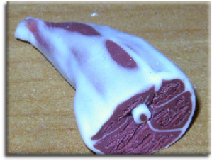 Succulent Leg of lamb ready to go into the oven, Or even in your butcher’s display! Try laying it in a roasting dish, slice up some Fimo veg, pour some liquid fimo over it and bake.