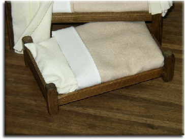 We designed this truckle bed to slide underneath the Fourposter bed. It comes complete with mattress, bedding and pillow.