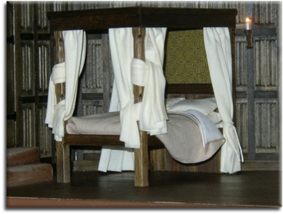 This is our version of a dressed Tudor Four Poster bed based on an original one on show at the Weald and Downland Museum, England.
