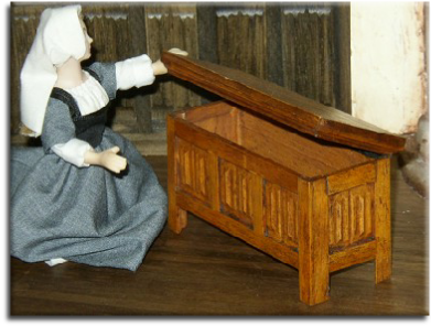 This type of chest was very popular in Tudor times - note the linenfold panels.