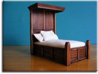 This is our version of a Tudor/Medieval halftester bed. It comes complete with mattress and pillows ready for you to dress.